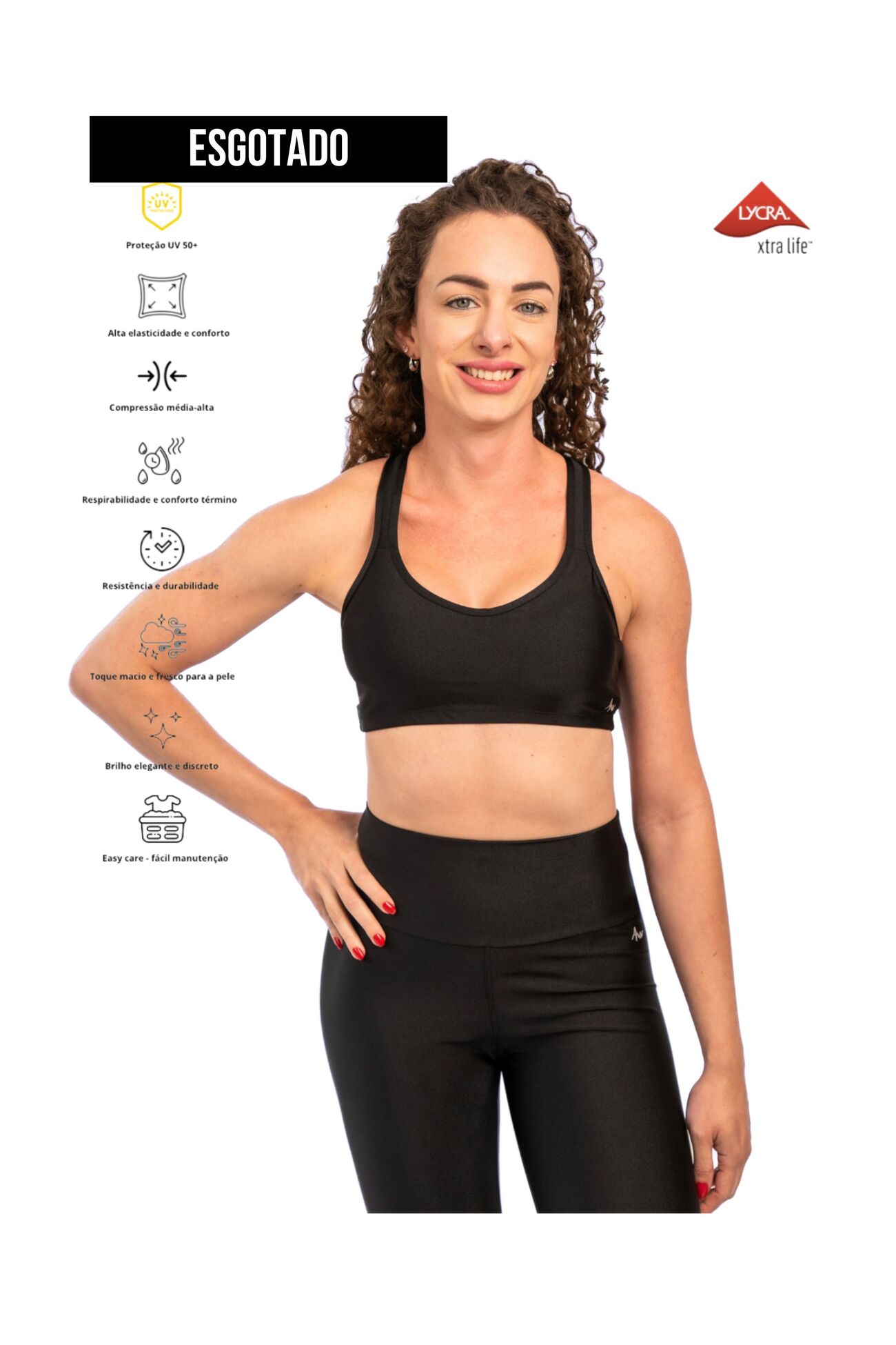 Tecnologia de Ponta para Desempenho e Durabilidade: Integrando a inovadora tecnologia LYCRA® XTRA LIFE™, este top garante uma resistência superior a óleos, cremes, protetores solares e repelentes, prolongando significativamente a vida útil da peça. Além disso, conta com: